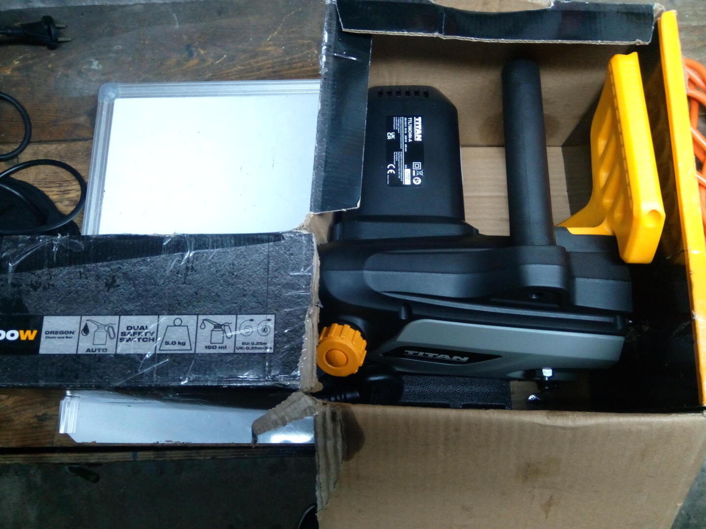2000W 5 m kabla, prowadnica z łańcuchem, opakowanie.